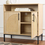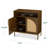 • QUALITY CONSTRUCTION: Crafted from engineered wood with metal legs and natural rattan doors-soft-close hinges and metal handles add both elegance and functionality
