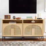 2-Door Rattan Cabinet, Buffet, w/ Cord Cutout & Storage Shelf, Natural