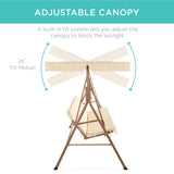 2-Person Outdoor Canopy Swing Glider Furniture w/ Cushions, Steel Frame