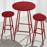 • BAR STOOLS: Slatted, round, backless stools with a sturdy footrest and a weight capacity of 240lbs per stool