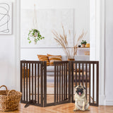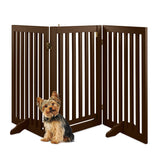 31.5in 3-Panel Freestanding Wooden Pet Gate w/ Door, Support Feet