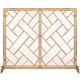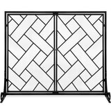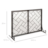 2-Panel Wrought Iron Geometric Fireplace Screen w/ Magnetic Doors - 44x33in