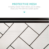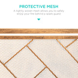 PROTECTIVE MESH: Tightly woven wrought iron mesh provides an easy-cleaning surface and a see-through barrier to trap sparks and embers