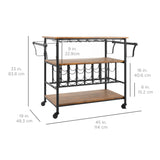 45in Industrial Wood Shelf Bar & Wine Cart w/ Bottle & Glass Racks