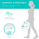 COMPACT & PORTABLE: Use the carrying handle to easily transport this small machine as needed. A battery-operated option allows you to sew anywhere using 4 AA batteries (batteries not included)