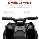 SIMPLE CONTROLS: An easy, one-button system with comfortable rubber handles gives your child the power to stop or go with a single push; just hold the button and watch them cruise