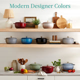 • HEAVY-DUTY DESIGN: Thick cast iron is set with a glossy exterior finish and an enamel interior to combine lasting quality with easy upkeep.
