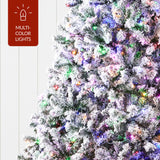 Pre-Lit Snow Flocked Artificial Pine Christmas Tree w/ Multicolored Lights