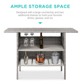 Outdoor Wicker Bar Counter Table w/ 2 Steel Shelves, 2 Rails