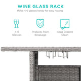 WINE GLASS RACKS: Includes 2 sets of rails for hanging wine glasses, allowing easy access to extra drinks when requested