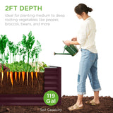 2FT GROWING DEPTH: 24 inches of depth holds up to 119 gallons of soil-ideal for medium to deep rooting plants and vegetables like broccoli, beans, and more. Note: This product does not include a bottom panel