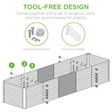 • BUILT TO LAST: Made of powder-coated steel panels, with a non-corrosive finish, four ground stakes, and eight stabilizing rods to keep your garden bed looking its best