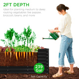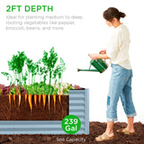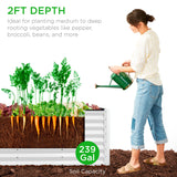 2FT GROWING DEPTH: 24 inches of depth holds up to 239 gallons of soil-ideal for medium to deep rooting plants and vegetables like broccoli, beans, and more. Note: This product does not include a bottom panel