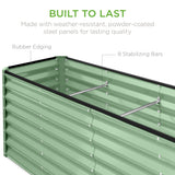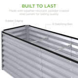 BUILT TO LAST: Made of powder-coated steel panels, with a non-corrosive finish, four ground stakes, and eight stabilizing rods to keep your garden bed looking its best