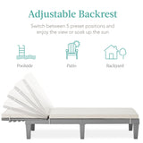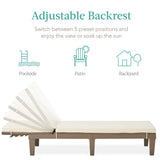 ADJUSTABLE BACKREST: The backrest uses a notched track system to give you a choice of five sitting positions; sit upright and enjoy the view, or lie flat and tan