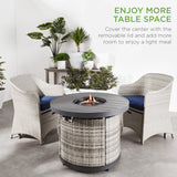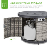 WEATHER-RESISTANT COVER: A durable nylon cover is included to help ensure this wicker fire pit table with heavy-duty, weather-resistant steel frame will withstand the elements when not in use