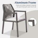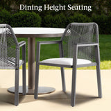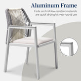 Set of 2 Indoor/Outdoor Aluminum Dining Chairs with Arms All-Weather Rope