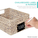 Set of 4 Water Hyacinth Pantry Baskets w/ Chalkboard, Marker - 12in