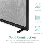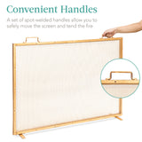 CONVENIENT HANDLES: A pair of spot-welded iron handles prevent heat buildup so you can move the screen and tend to your fire
