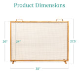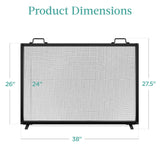 Single Panel Handcrafted Steel Mesh Fireplace Screen w/ Handles - 38x27in