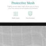 ANTI-SPARK MESH: Tightly woven steel mesh provides an easy-cleaning surface and a see-through barrier to trap sparks and embers