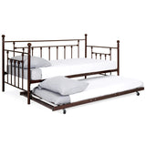 Twin Sized Metal Lounge Daybed Frame w/ Trundle, Finials