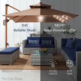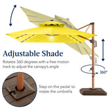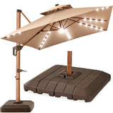 Woodgrain Pattern 2-Tier Outdoor Solar LED Cantilever Umbrella - 10x10ft