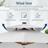 • LARGE SHADED AREA: A vibrant, UV-resistant polyester canopy provides ample (136 SqFt.) shade while a built-in vent enhances airflow and helps you stay cool.