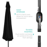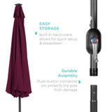 ADJUST YOUR SHADE: Stay cool at all times, as the easy push-button tilt system gives coverage no matter what time of day, while a wind vent cools air under the umbrella
