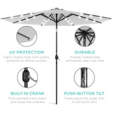 Solar LED Lighted Patio Umbrella w/ Tilt Adjustment, UV-Resistant - 10ft