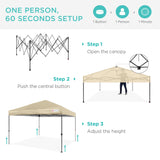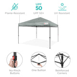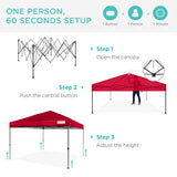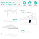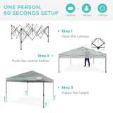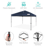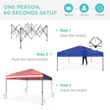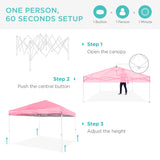 ONE-PERSON SETUP: Designed with one central button and no-pinch height adjusters to allow easy, one-person setup and breakdown; just open the canopy, push the button, and adjust the height for instant shade in only a minute!