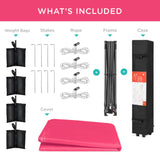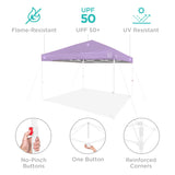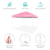 ROLLING STORAGE CASE: Compact your canopy with a few clicks of the button and slide it into the zip-up carrying case! Features a set of wheels and a rugged handle to move from party to party