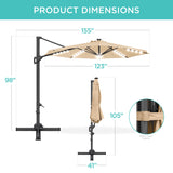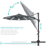 360-Degree Solar LED Cantilever Offset Patio Umbrella w/ Tilt - 10ft