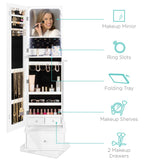 360 Swivel Mirrored Jewelry Cabinet Armoire w/ LED Lights, Mirror