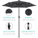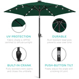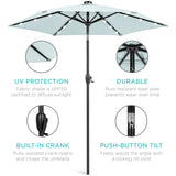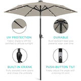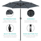 Outdoor Solar Patio Umbrella w/ Push Button Tilt, Crank Lift - 7.5ft
