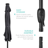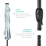 • USER-FRIENDLY MECHANISMS: Features a hand-operated crank to open and close the umbrella with ease, while a push-button tilt system adds extra protection for the sun