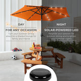 • CLASSIC OUTDOOR DECOR: Enjoy your garden day or night as this umbrella protects you from the sun and bathes your outdoor meals in a glow of soft, LED light! Matching umbrella base: SKY3784(freestanding) or SKY4241(through table)