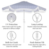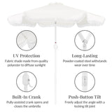 EASY CRANK & TILT MECHANISM: Open and close the umbrella effortlessly using the smooth hand-crank system, while the push-button tilt lets you angle the canopy for optimal shade throughout the day