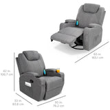 Linen Fabric Swivel Massage Recliner Chair w/ Remote Control, 5 Modes