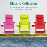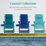 LOCKABLE RECLINING SYSTEM: Smoothly glide into an ergonomic zero-gravity position with removable elastic cords that immediately adjust to your body's weight