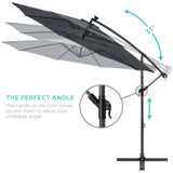 Solar LED Offset Hanging Patio Umbrella w/ Crank Tilt Adjustment - 10ft