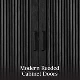 REEDED CABINET DOORS: Elegant textured finish conceals storage while complementing contemporary and classic interiors