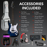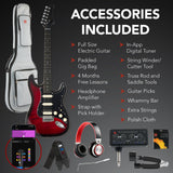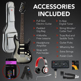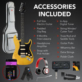 ALL-IN-ONE GUITAR KIT: Includes a carrying case, headphone amplifier, over-ear headphones, a strap with built-in pick storage, string winding/cutting tool, extra strings, and a pick set-everything you need to succeed!