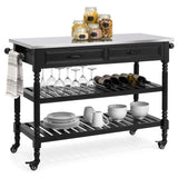 Kitchen Island Storage & Bar Cart w/ Stainless Steel Top