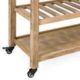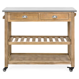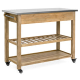 Kitchen Island Storage & Bar Cart w/ Stainless Steel Top - Rustic Wood