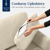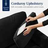 • QUALITY CRAFTMANSHIP: Crafted with a solid wood frame and legs, and soft and cozy corduroy material, this couch's elevated materials enhance its quality and texture while providing an inviting feeling and a contemporary style