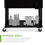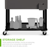 MOBILE CART: The built-in steel stand with four sturdy wheels let you take this cooler on the go, while two locks add stability