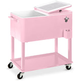 Portable Rolling Cooler Cart w/ Bottle Opener, Catch Tray - 80qt