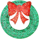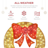 Pre-Lit Outdoor Christmas Wreath, LED Metal Holiday Decor w/ Bow- 48in