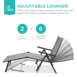 ADJUSTABLE OUTDOOR LOUNGERS: Each chaise lounge chair features six preset back positions and two footrest positions for a comfortable outdoor lounging experience
